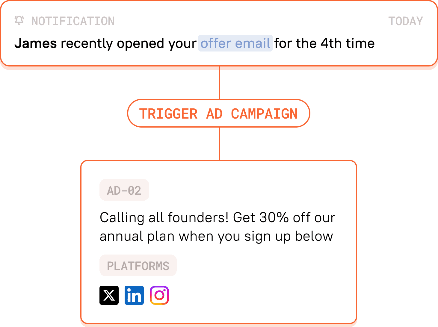 When someone clicks your email 3+ times, automatically retarget them with ads.
